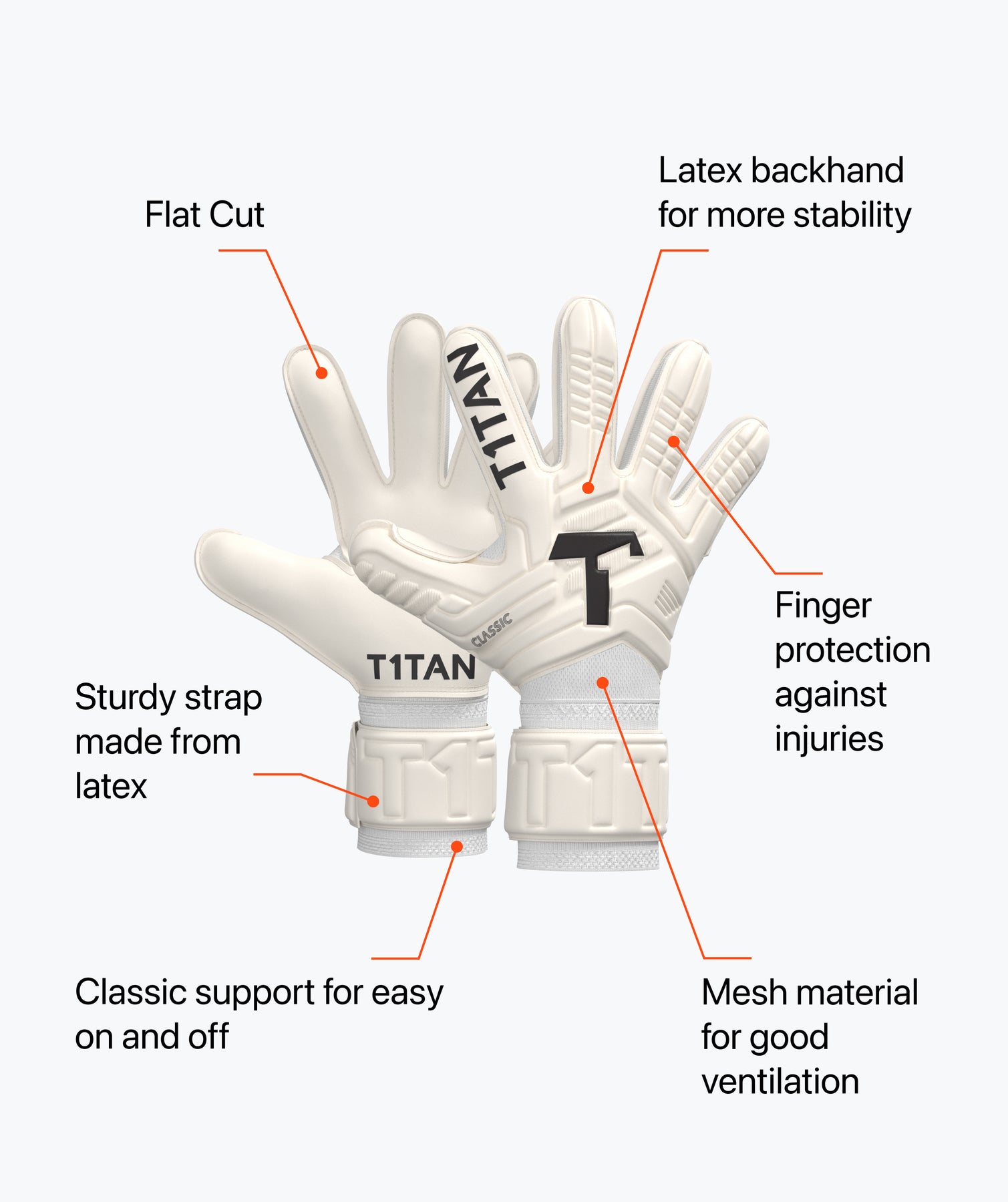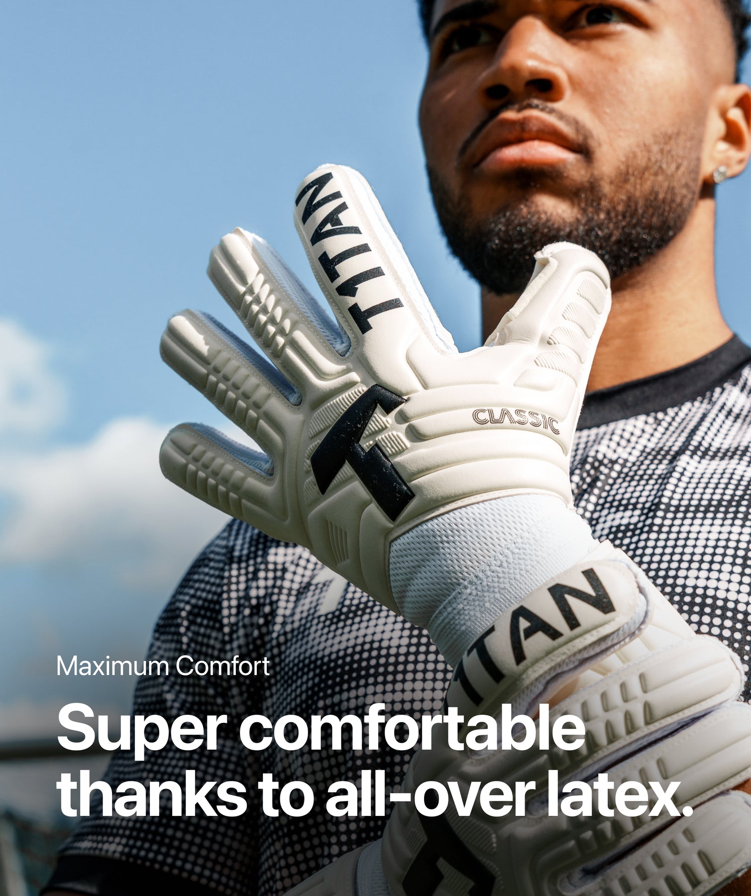 Inspiradas nos nossos melhores modelos profissionais: as luvas CLASSIC 1.0 WHITE-OUT oferecem-lhe uma forte aderência e uma boa resistência à abrasão. Isto torna-as as luvas T1TAN perfeitas para principiantes ambiciosos e jovens guarda-redes exigentes.