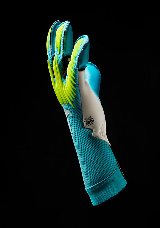 As linhas dos punhos de silicone amarelo fluorescente seguem cada movimento dos dedos e proporcionam uma aderência extra ao bater.