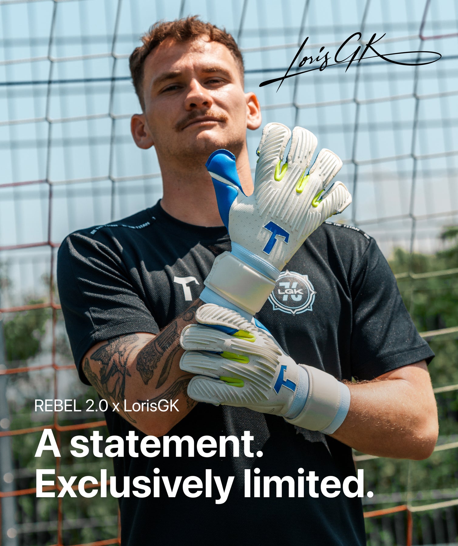 Luvas profissionais de goleiro para grama – desenvolvidas com o influenciador @loris_gk.