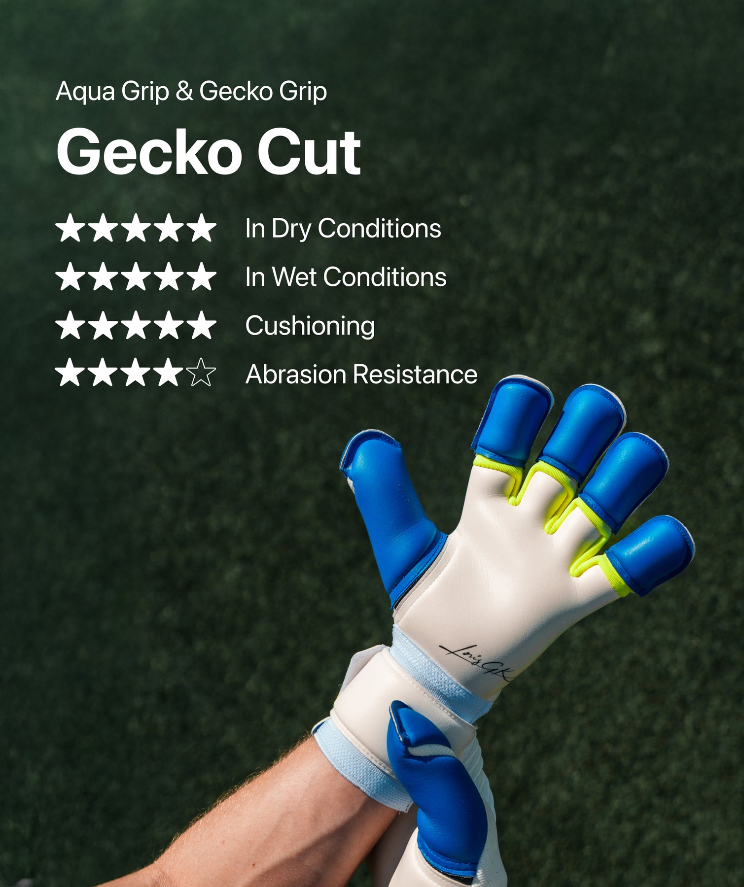 Aderência máxima em qualquer condição climatérica graças à combinação de Aqua Grip nas pontas dos dedos e Gecko Grip nas palmas das mãos.